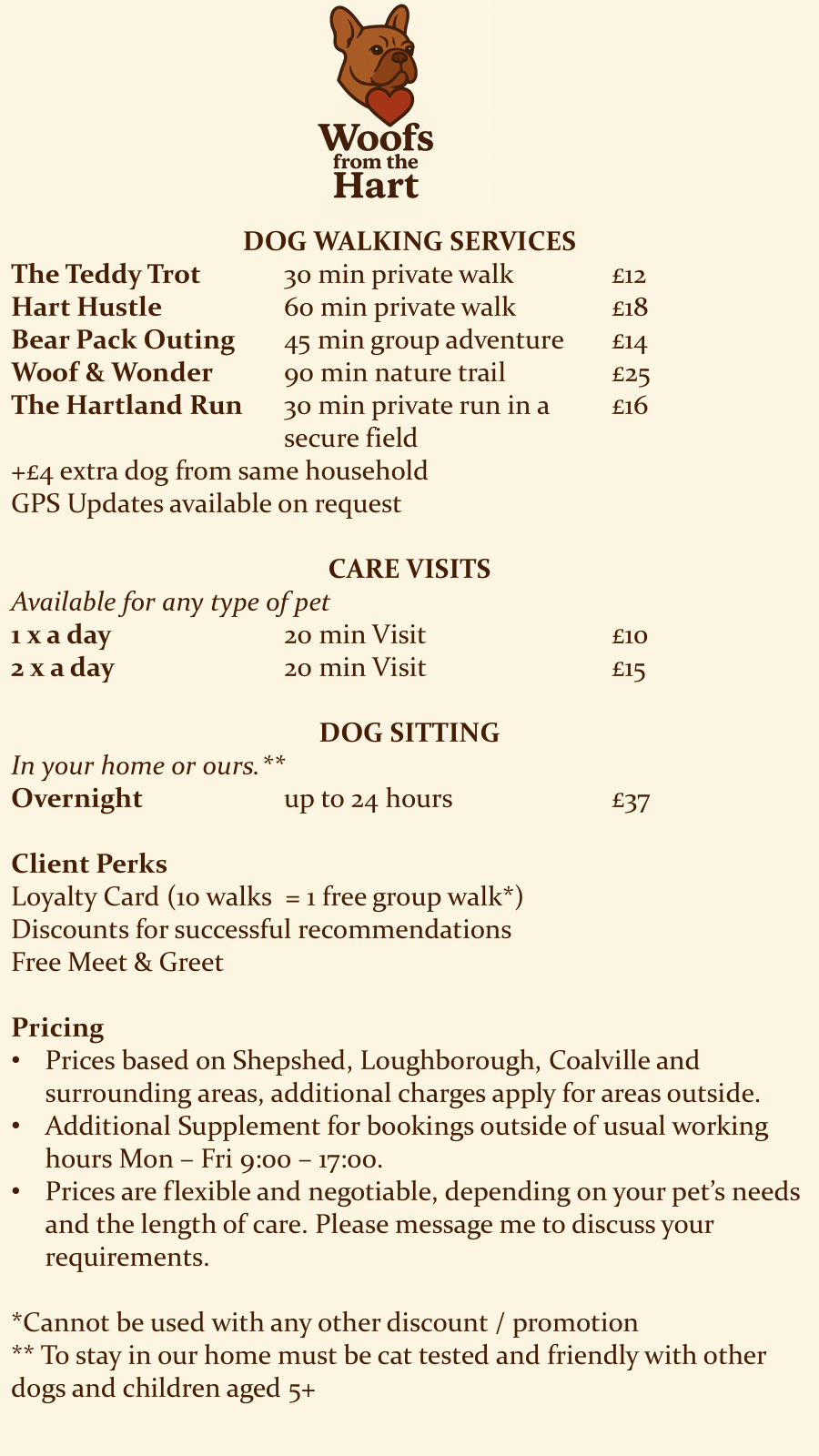 If a more bespoke package would be more suited to your pups needs, or you're looking for another pet service then please get in touch so we can discuss.